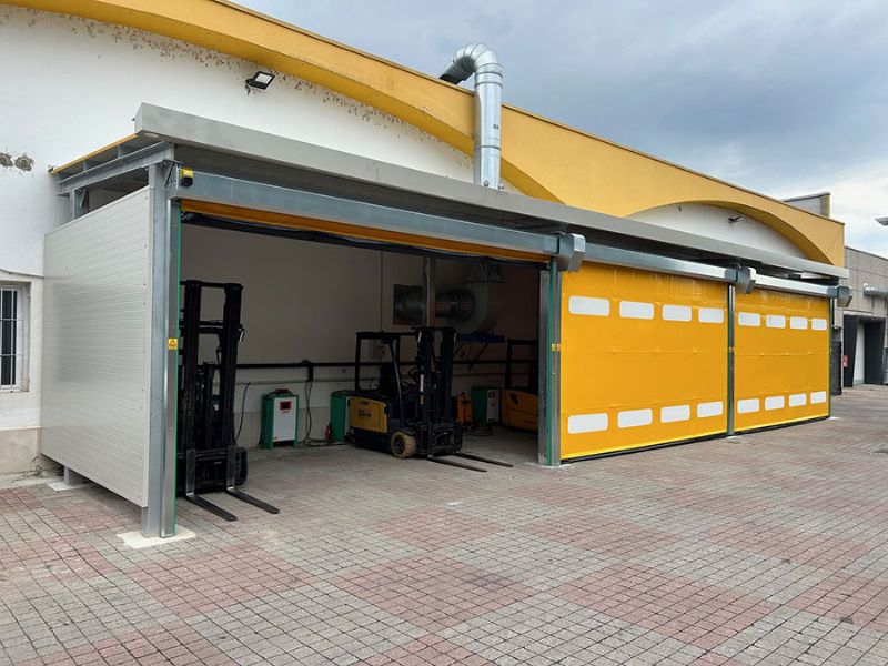 Gieffe Chiusure fornisce porte che si installano con estrema facilità in ogni ambiente produttivo. La struttura portante è realizzata con materiale zincato preforato, fissabile tramite dei semplici tasselli.