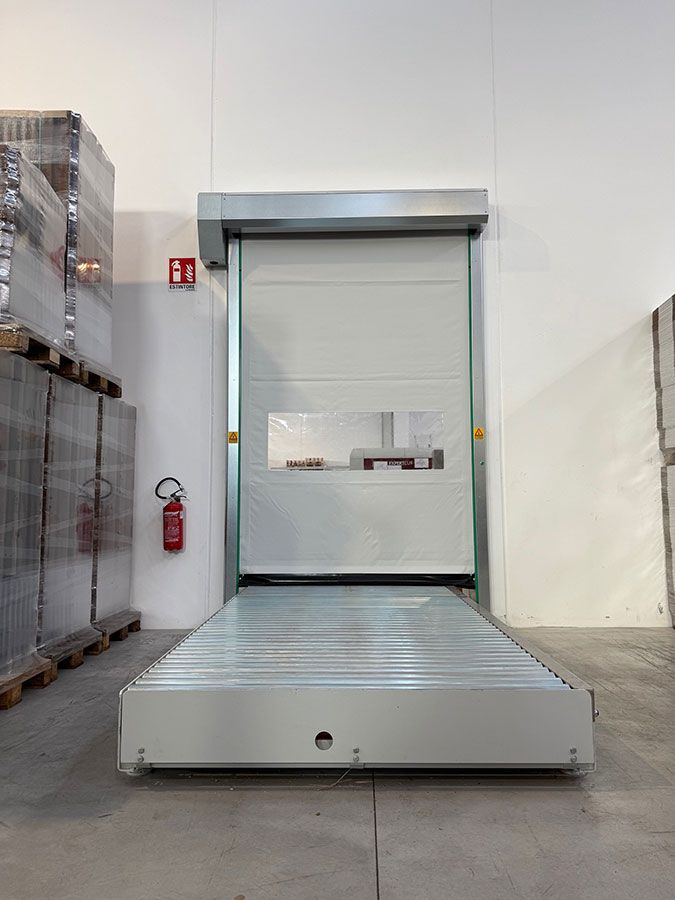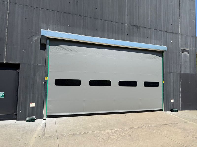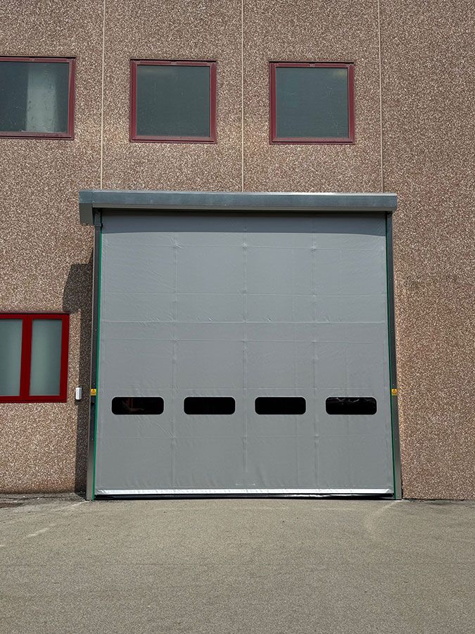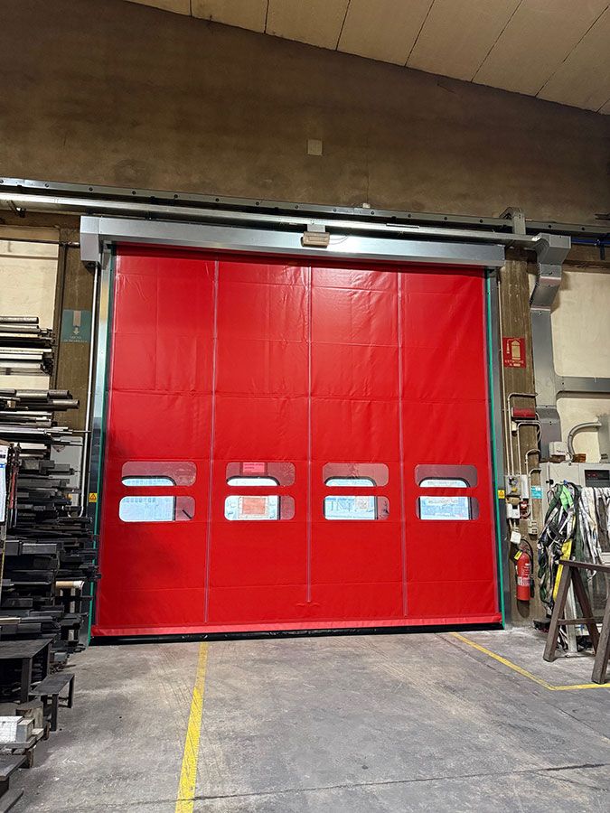 Le porte autoriparanti sono costituite da un telo in PVC che scorre su una struttura portante metallica. L’apertura avviene tramite un rullo attivato da un motore elettrico, il quale avvolge il telo nel momento in cui arriva il comando di apertura.